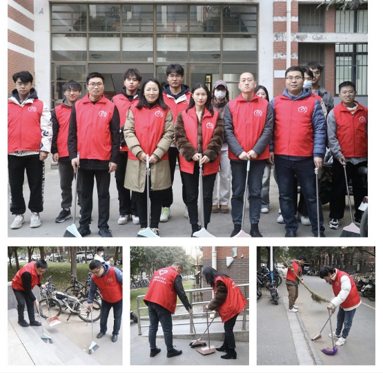 活动中,志愿者们身穿红马甲,手拿劳动工具对学院周围的落叶进行了全面清理。机关党支部老师以身作则细致地清理了卫生死角,学生们也积极投入到卫生大扫除中,不怕脏、不怕累,共同改善学院周边环境。在志愿者们的共同努力下,学院周边焕然一新。在活动过程中,机关支部的老师们向学生们进行了环保知识的宣传,让同学们深刻地认识到,保持学院环境整洁不仅是义务,更是为了师生们有一个干净整洁的学习环境。