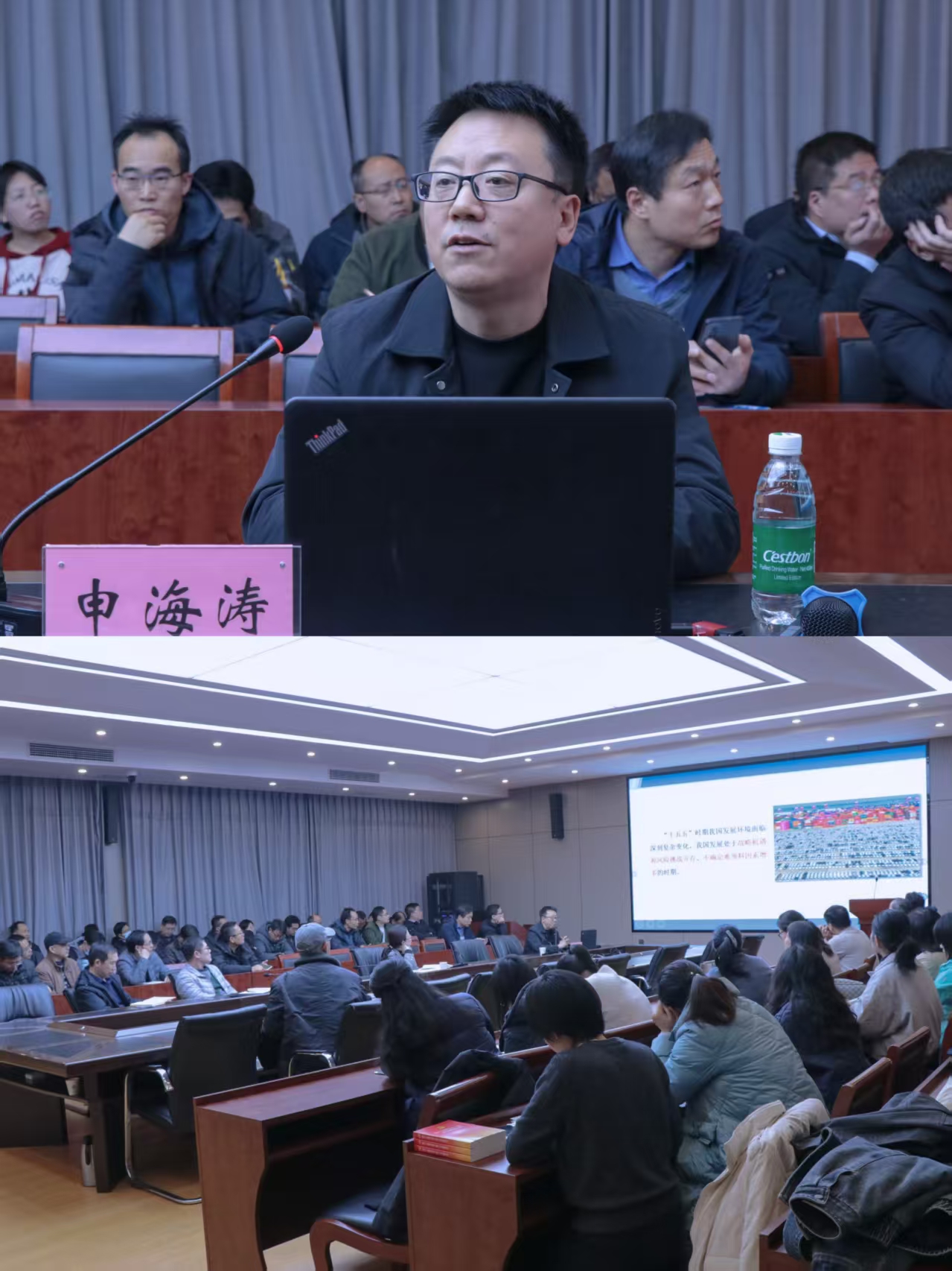 宣讲会上,申海涛老师结合个人对全会精神的深入思考与系统把握,全面介绍了《中共中央关于制定国民经济和社会发展第十五个五年规划的建议》的起草背景。围绕科技革新、产业升级、民生改善、文化繁荣、能源转型、国防巩固等六大关键领域,他从发展目标、前进方向和重点任务等维度进行了详细解读,系统梳理了“十四五”时期我国经济社会发展取得的重大成就,并科学研判了“十五五”时期所面临的国际国内形势。申老师还聚焦高等教育改革等与教职工密切相关的议题,重点阐释了全会精神对高校教育教学和人才队伍建设的指导作用,引导大家将全会精神深度融入日常教学、科研与管理工作。