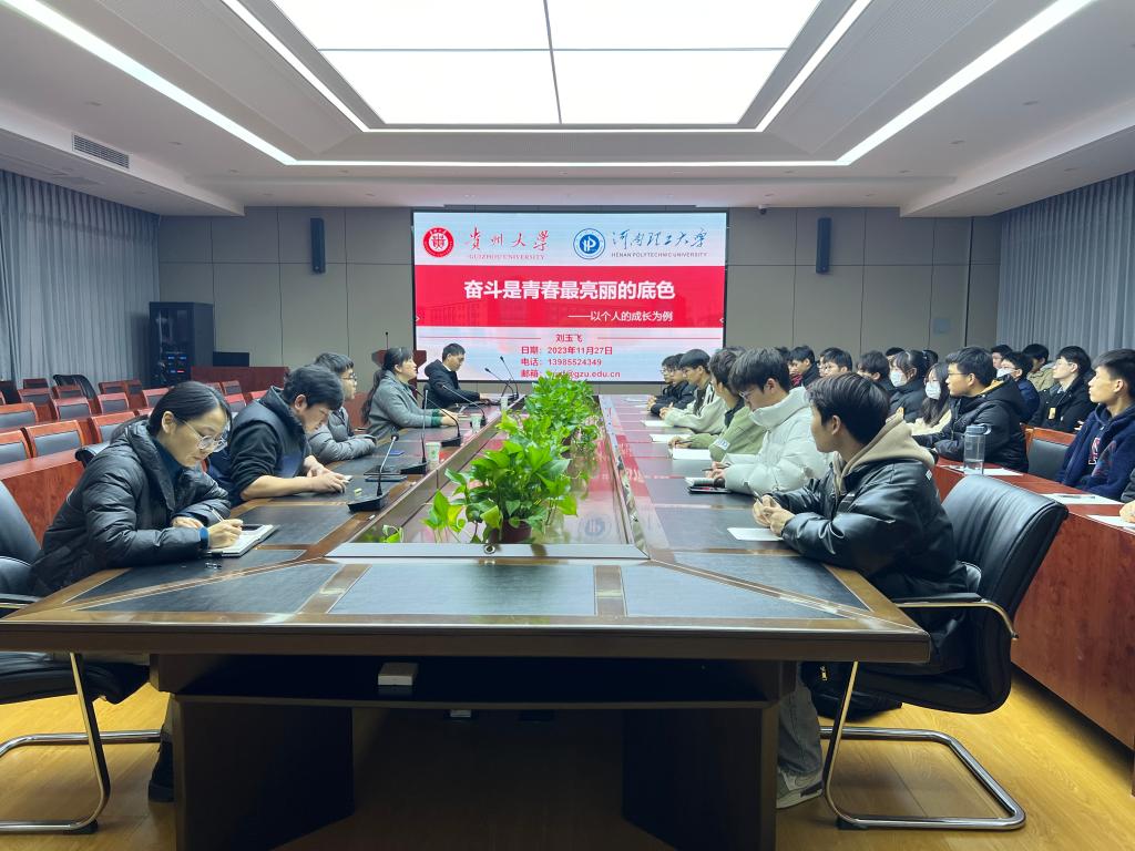 11月27日下午,柠檬导航 主办的“电气红色大讲堂”——优秀校友进校园系列活动在电气101举行。贵州大学特聘教授刘玉飞(材料科学与工程专业2009级校友)受邀以《奋斗是青春最亮丽的底色》为题作专题报告。学院党委副书记朱伶俐、学工办、团委负责老师参加了报告会,该院百余名学生干部代表聆听了报告。