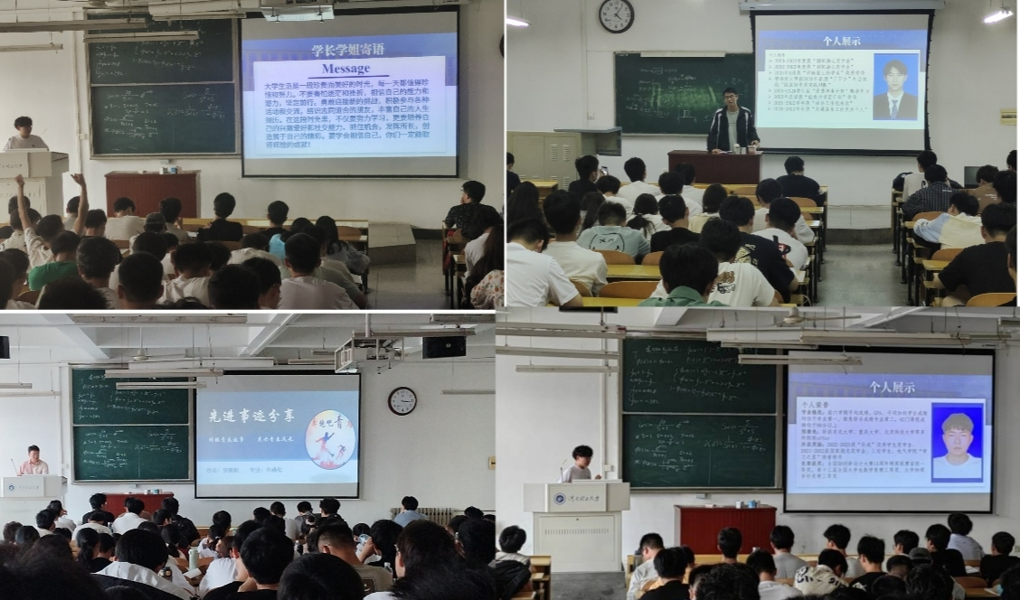 本次主题教育活动共邀请了四位优秀毕业生,旨在通过分享自身成长经历,帮助低年级学生加强职业生涯规划教育,引导学生健康成长成才,发挥朋辈引领的育人功能。刘梦豪以“志愿服务中的成长与责任”为题,谈到自己在校期间组织并参与了多个志愿服务项目。通过这些经历,不仅可以提升自己的组织能力和领导力,更加深刻体会到社会责任感的重要性。王志杰则以“创新创业的激情与挑战”为题,分享了他在省级创新创业大赛中获得一等奖的经历。他激励大家不断挑战自我,勇于创新。郜振阳分享题为“科研探索中的坚韧与突破”,他讲述了自己在实验室科研项目中的经历,从一开始的困难重重,到最终成功研发出一款智能控制系统,生动展示了科研探索中的坚韧与突破精神。李日新以“担当强国使命”为主题,分享了他对个人职业生涯规划的理解。他曾参与“三下乡”社会实践活动并获得国家级荣誉,这段经历让他深刻认识到把握时代机遇的重要性,他号召大家积极投身到国家需要的地方,用实际行动践行青年一代的责任与担当。