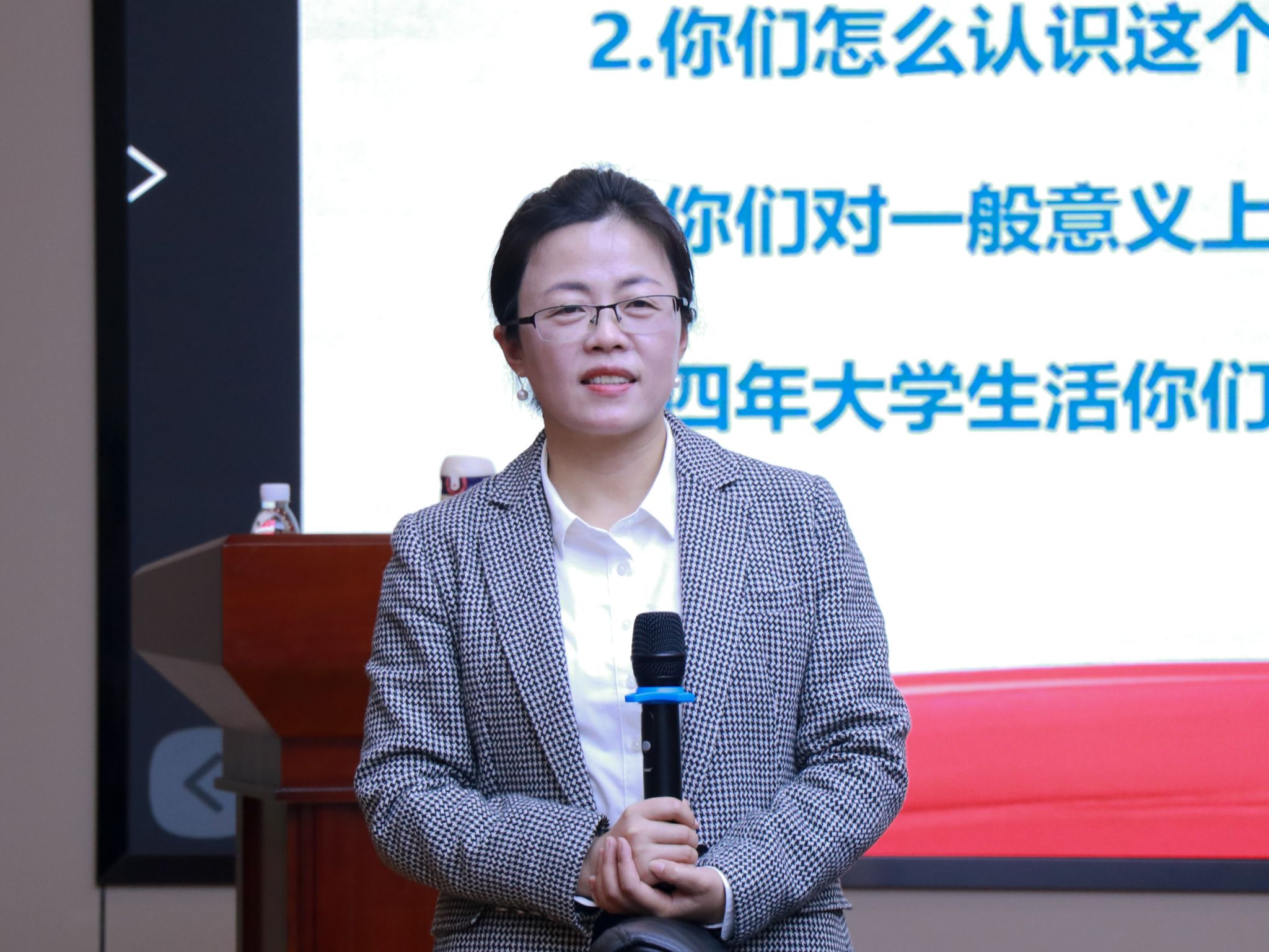 李慧敏围绕“大学”一词,以独特的视角和深入浅出的形式,与学生展开了三个话题的讨论。一是聊一聊我们的大学;细致阐述了我校的发展历程和核心价值理念。二是说一说你对大学的认识;围绕这个话题,学生们表现出极高的热情和参与度,积极踊跃发言,表达了自己的看法和观点。三是谈一谈进入大学你要做什么;充分明确了大学生的主责主业,并向同学们提出四点希望和要求:一是修品德,学做人,重视品德和修养的提升;二是定方向,寻自我,制定个人的成长规划;三是立学业,重实践,树立全新的学习理念;四是扬自信,建习惯,提高自身的综合素养。她寄语学生应充分运用校园资源,积极参加校园活动,锐意进取,争做新时代领航人。