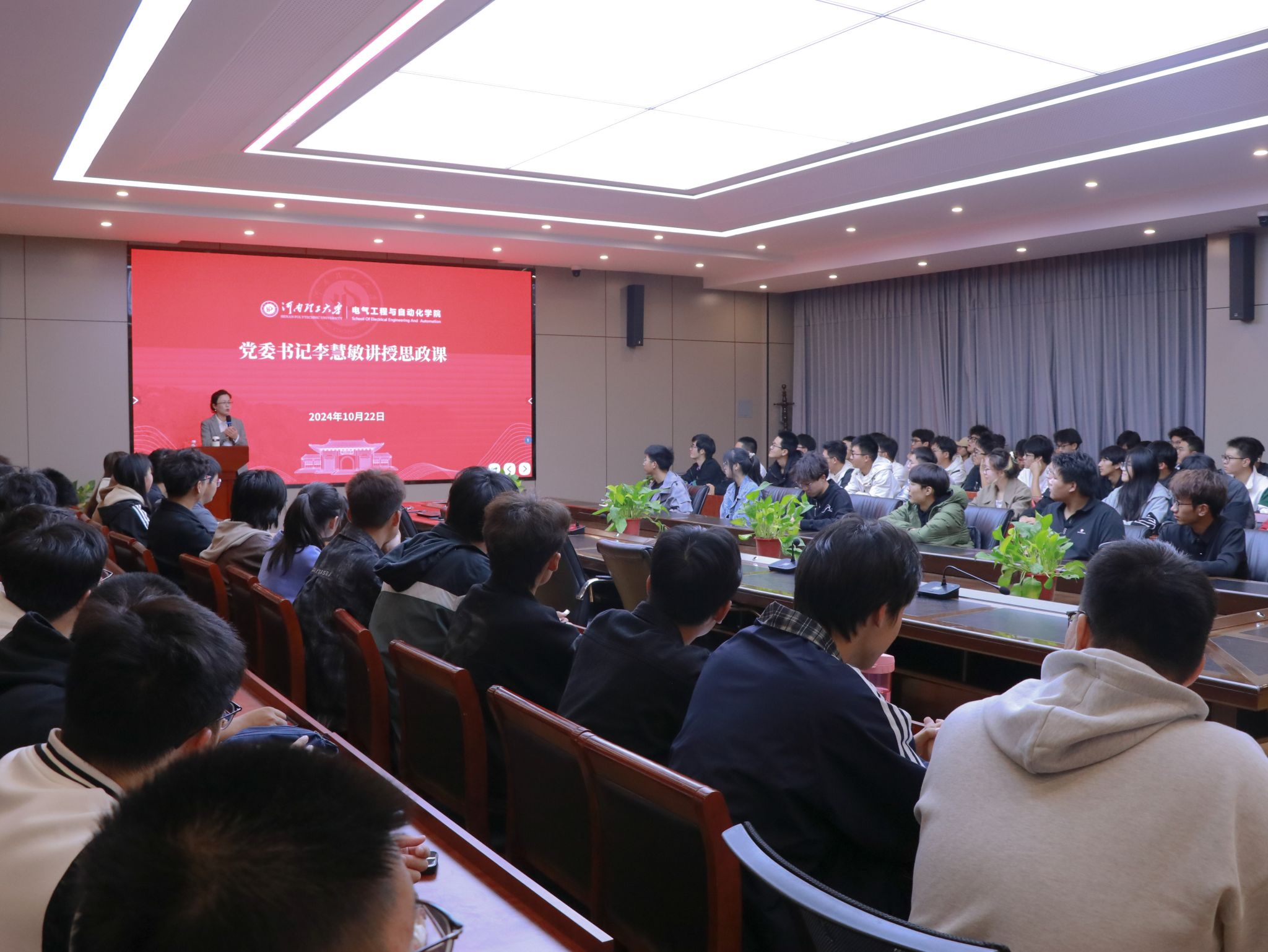 党委书记李慧敏在电气楼101会议室以《邂逅电气,与子偕行》为题,为学院2024级全体入党积极分子和班干部讲授思政课。