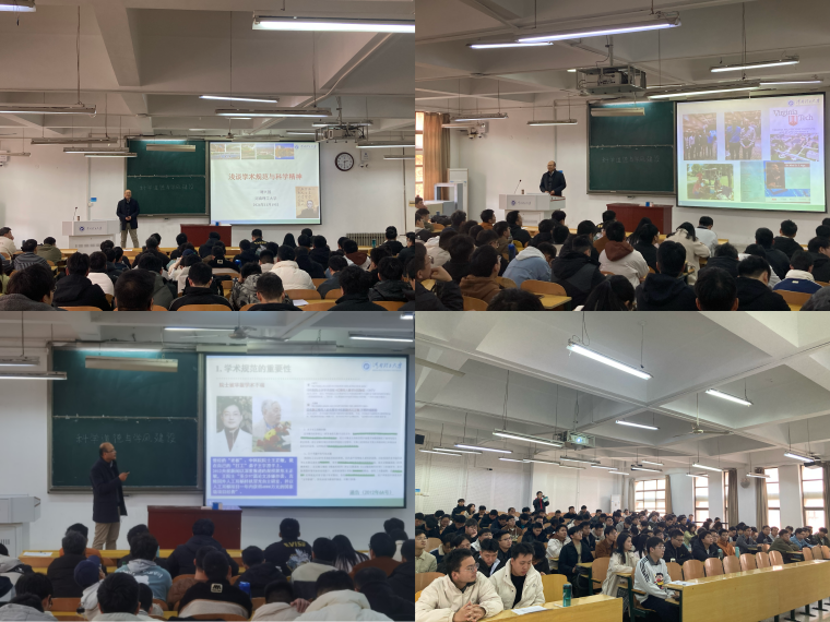 宣讲会上,谭教授作了题为《浅谈学术规范与科学精神》的报告,从学术规范案例、科学精神、选题指导三方面展开。他指出,科学道德是科研工作者的立身之本,而优良学风是学术进步的重要保障。通过剖析国内外典型学术不端案例,他深刻阐述了不当行为对学术界的危害,并强调研究生应坚守科学道德底线,培养严谨的治学态度和良好的学风,特别是在文献引用、数据处理和实验设计中严格遵循规范。