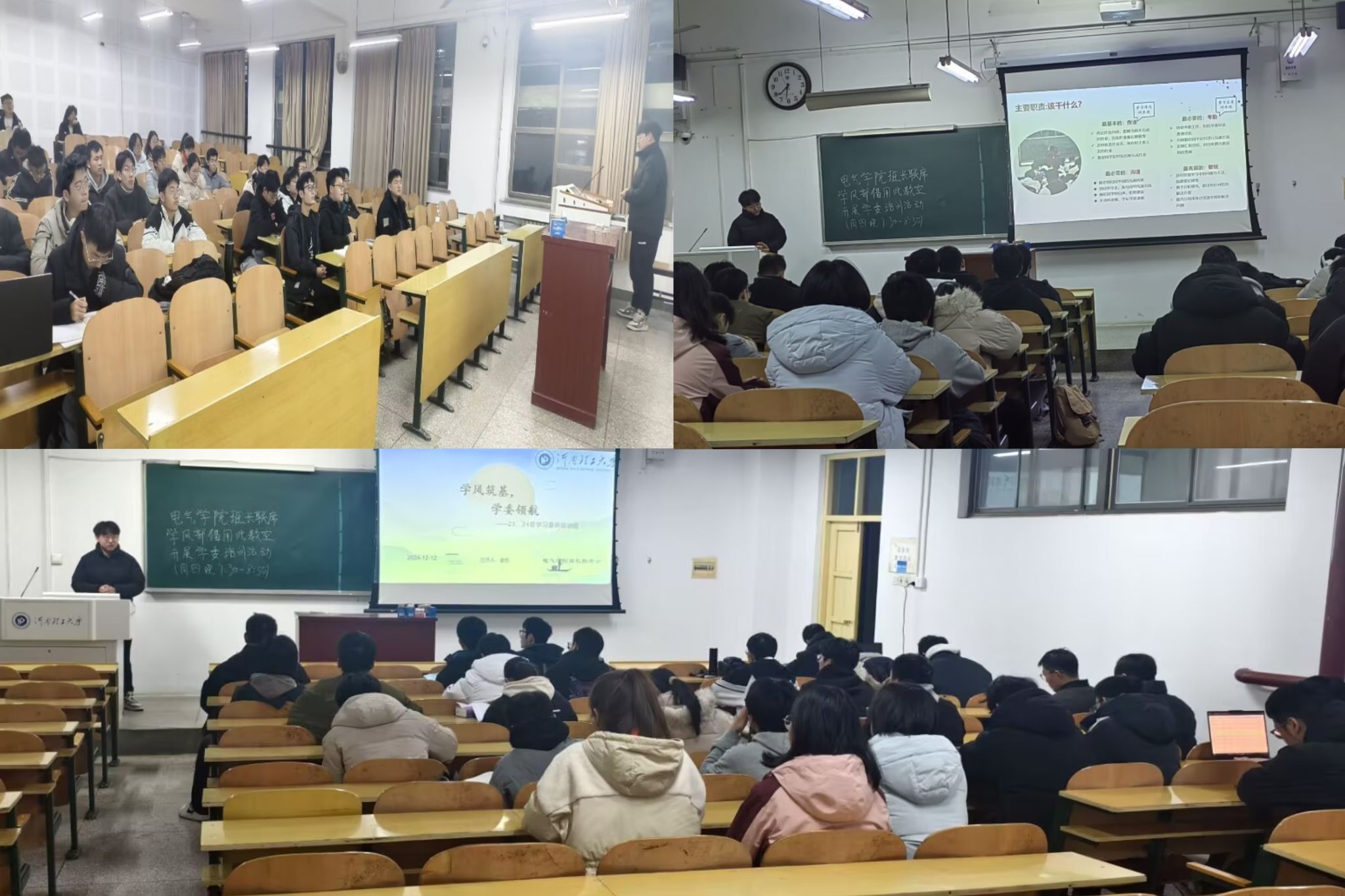 为进一步提升新晋学委自身能力,加强学院学风建设。柠檬导航 班长联席会学风部于2024年12月12日在电气楼305教室举办“学风筑基,学委领航”主题活动——23、24级学习委员培训大会。