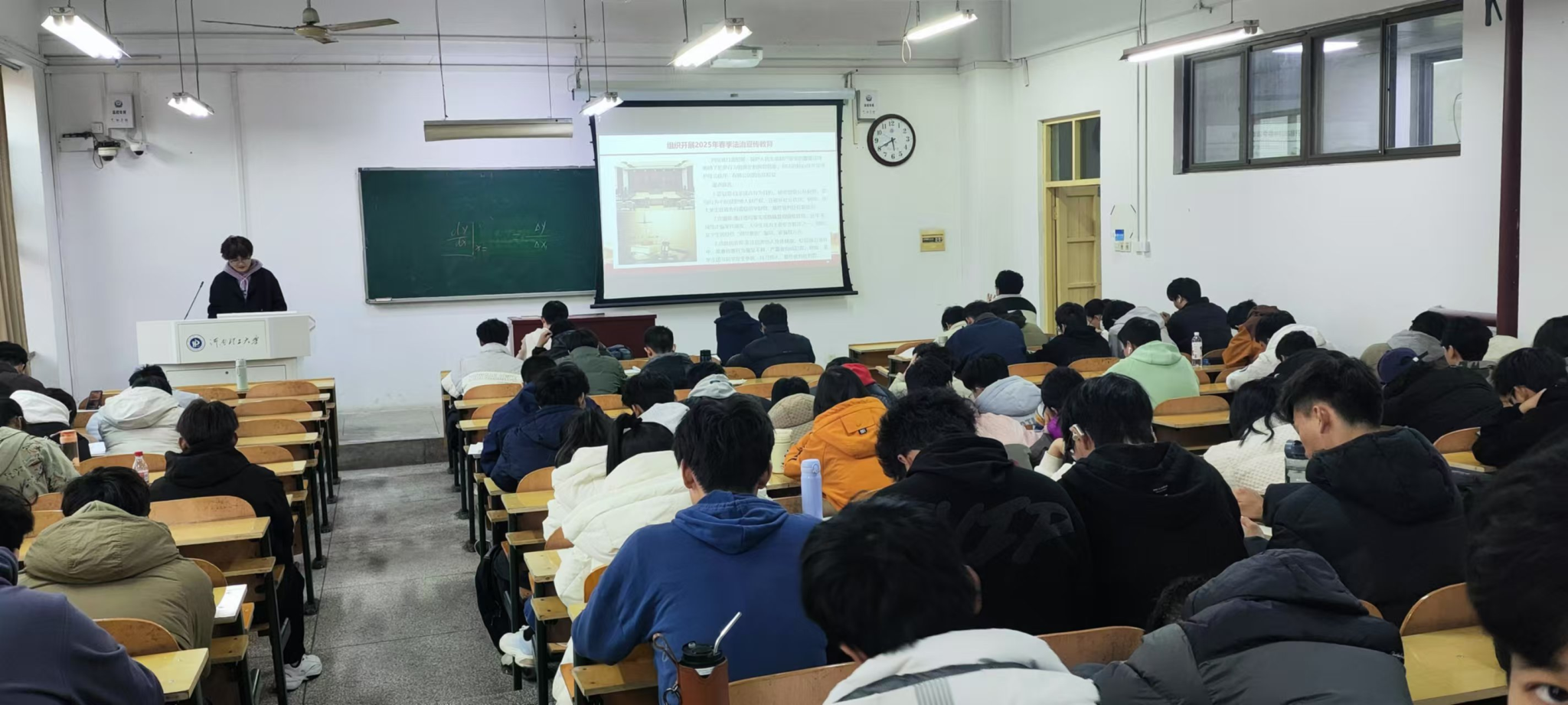 在互动环节中,同学们踊跃提问,就“如何平衡网络自由与法律约束”“校园交通安全隐患”等话题展开热烈讨论。宣讲团成员结合《道路交通安全法》与真实事故案例,强调“骑行戴头盔、遵守信号灯”的重要性,并呼吁同学们“从身边小事做起,做文明守法的践行者”。现场同学纷纷表示,此次宣讲既有理论深度又贴近实际生活,不仅深化了对法律法规的理解,更激发了投身强国建设的责任感与使命感。宣讲会进入尾声,宣讲团各成员再次呼吁同学们将法治精神融入日常言行,做社会主义法治的忠实崇尚者,让法治护航青春,共筑和谐校园。