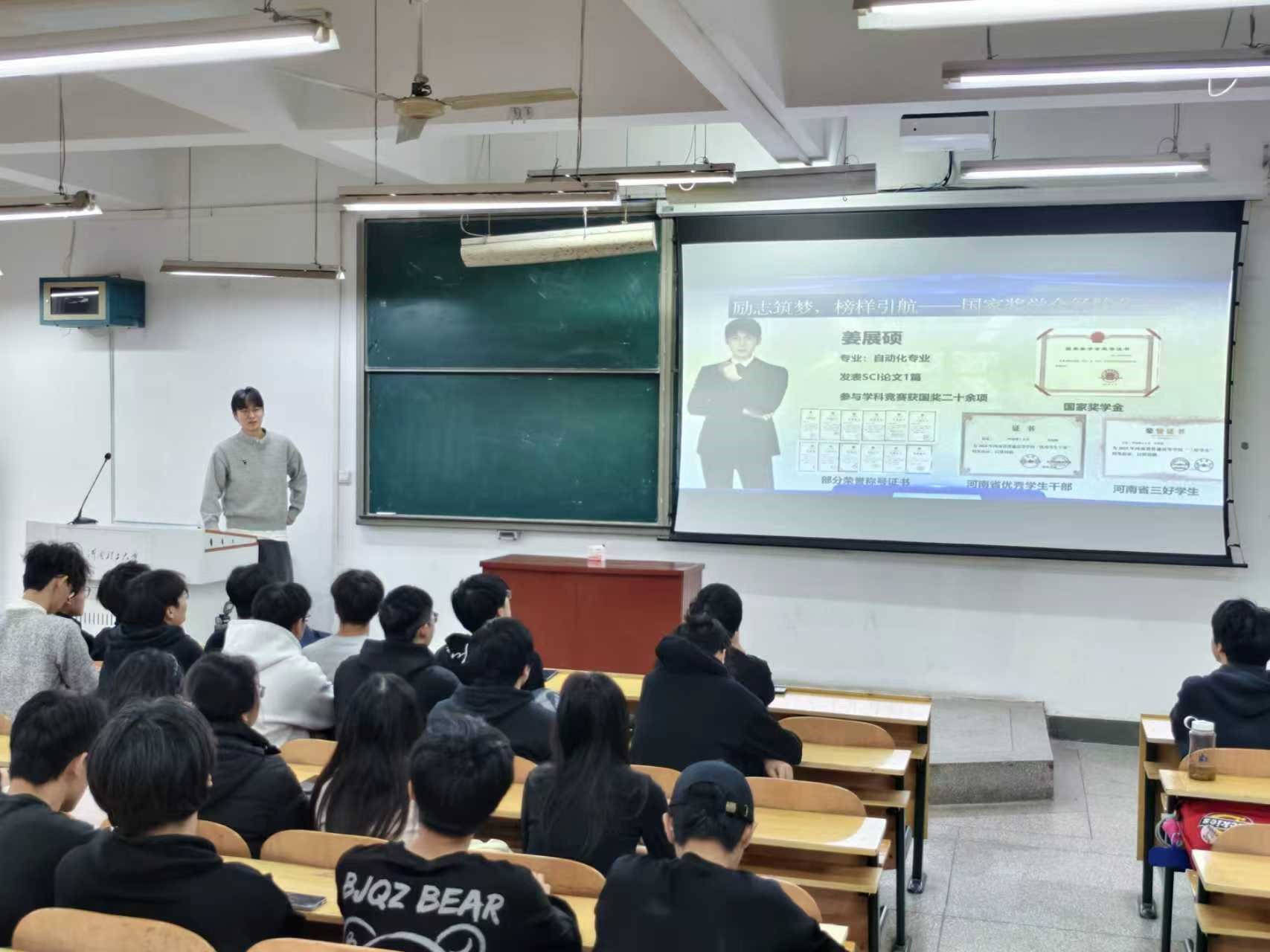 为进一步强化资助育人实效,帮助学生树立明确的成长目标,柠檬导航 于近日开展了“励志筑梦·榜样引航”国家奖学金经验分享会。活动由学院资助专员郭帅房老师组织举办,吸引了来自各年级的学生代表参加。会议邀请本年度国家奖学金获得者代表姜展硕同学进行学习经验、科研实践与成长心路的专题交流。