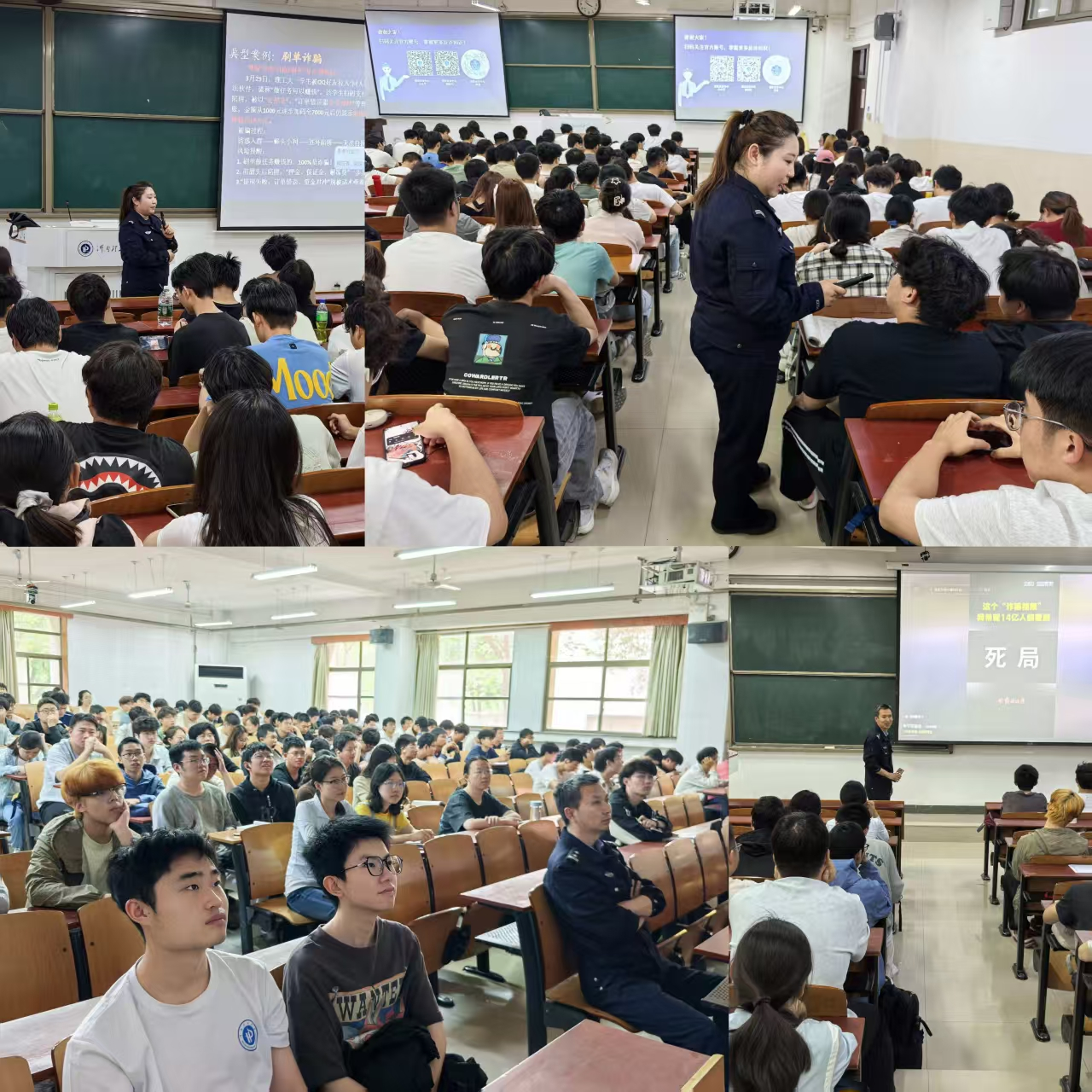 两场宣讲活动紧扣学生社会经验不足、防范意识薄弱的特点,采用“案例剖析+实操指导”的形式,精准发力、靶向宣传。片区反诈民警结合高校高发诈骗案例,用通俗易懂的语言,详细拆解了刷单返利、冒充客服退款、网络交友诱导投资、校园贷等常见骗局的作案套路,深入分析诈骗分子利用学生贪图小利、轻信他人的心理设下的陷阱,用身边事教育身边人,让同学们直观感受电信网络诈骗的隐蔽性与危害性。