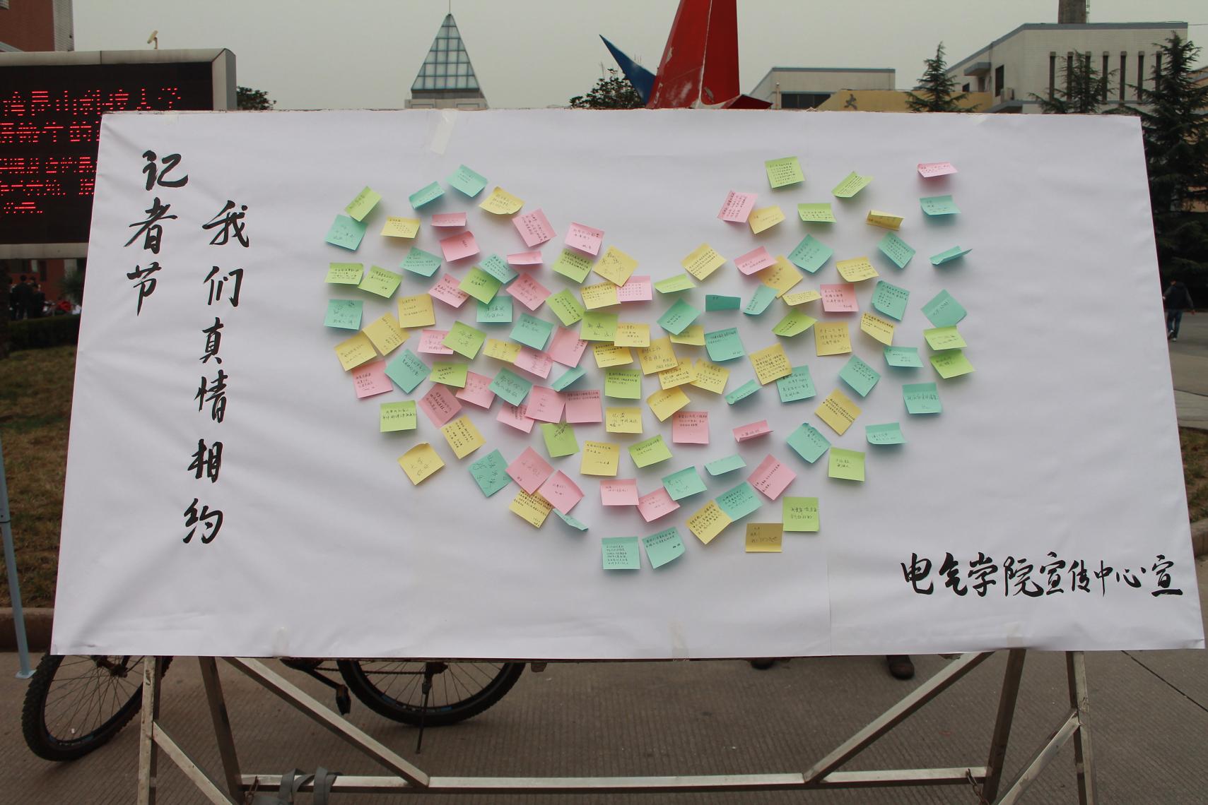 活动分为“记者节宣传”、“记者采访”和“记者采访评比”三个环节。宣传中心全体成员满怀激情的参与每个环节。在“记者节宣传环节”,记者部成员整理记者节宣传的资料,设计部成员进行版面的设计和制作,并在指定日期将展板在春秋大道展示。在学苑餐厅东门宣传中心成员积极为同学们普及记者节的相关知识。同学们也纷纷用自己的语言表达出自己对记者和宣传中心的祝福,并用写有祝福的彩纸粘出一个大的心形,以此来表达对从事宣传工作者的祝愿。