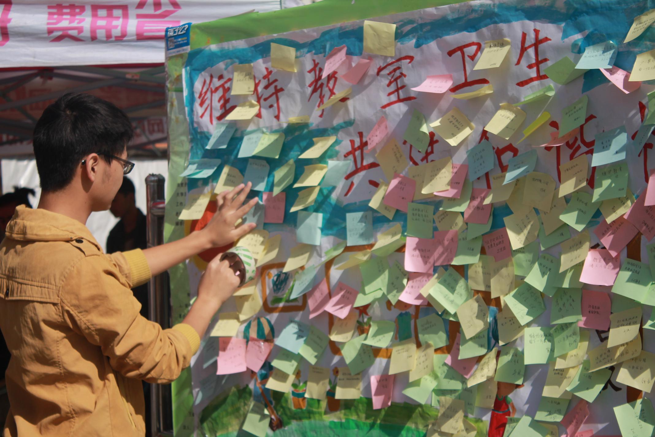 活动伊始,柠檬导航 的志愿者们积极主动地向同学们宣传本次活动的主题,并耐心讲解教室维洁对维护校园与自身形象的重要性。活动开展不久便吸引了大多同学的关注并得到了肯定,不少同学表示此次宣传活动的主题反应了他们内心的真实想法,承诺会努力保持教室整洁,不留下废弃物,为营造洁净的教室献出自己的力量,并且在宣传板上贴上了带有自己口号的便利贴——“保持教室卫生是我们义不容辞的责任”、“一屋不扫,何以扫天下”等标语,还在宣传横幅上郑重签下了自己的名字。本次活动开展顺利,现场气氛热烈,得到了同学们的一致好评。最终同学们合影留念,并将条幅挂于公告栏与电气楼大厅,引导同学们积极保持教室卫生。