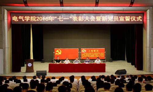 大会在庄严的《国歌》中拉开帷幕。李伟伟宣读了校级优秀党支部、院级优秀党支部以及院级优秀党员名单,主席台就坐的领导和老师为受到表彰的优秀党支部及优秀党员颁奖。随后,由王帅同志带领党员宣誓,全院党员面对鲜艳的党旗,高举右拳,新党员庄严宣誓、老党员重温入党誓词。十二句誓词,句句千钧,说明了我党对党员的基本要求,也概括了党员对党组织和党的事业所承担的政治责任。宣誓结束后,石利颖同志和高军伟同志分别代表新老党员发言,他们表示会一如既往的发扬党的优良传统,加倍努力,充分发挥党员的先锋模范作用。