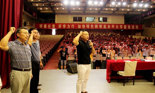 ??????????6月30日,柠檬导航 在校小礼堂召开2016年“七一”表彰大会暨新党员入党宣誓仪式。学院党委书记康全玉、党委副书记王瑞,专职组织员尹艳玲、学工办主任李伟伟、团委书记王帅及136名新党员和169名老党员参加了会议。大会由王瑞主持。